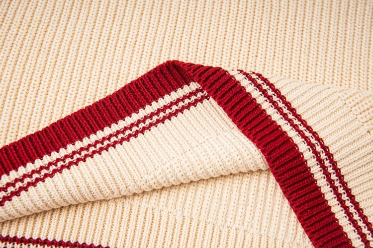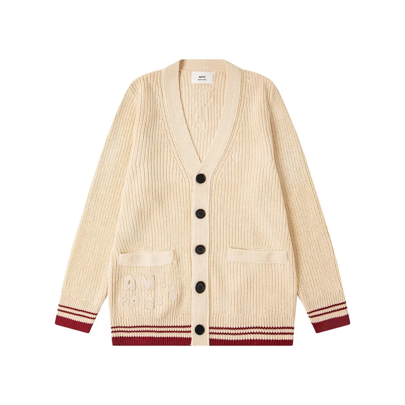 AMIPARIS Knitted Striped V-Neck Drop-Shoulder Wool Sweater-5156