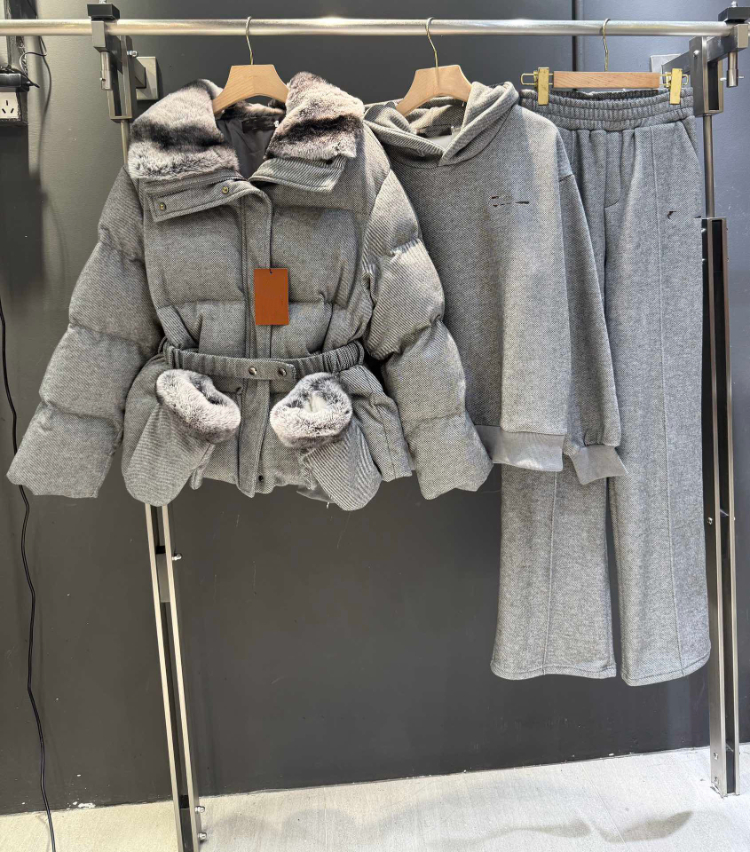 Home > Loro Piana new four-piece suit with fur collar and waist belt-5382