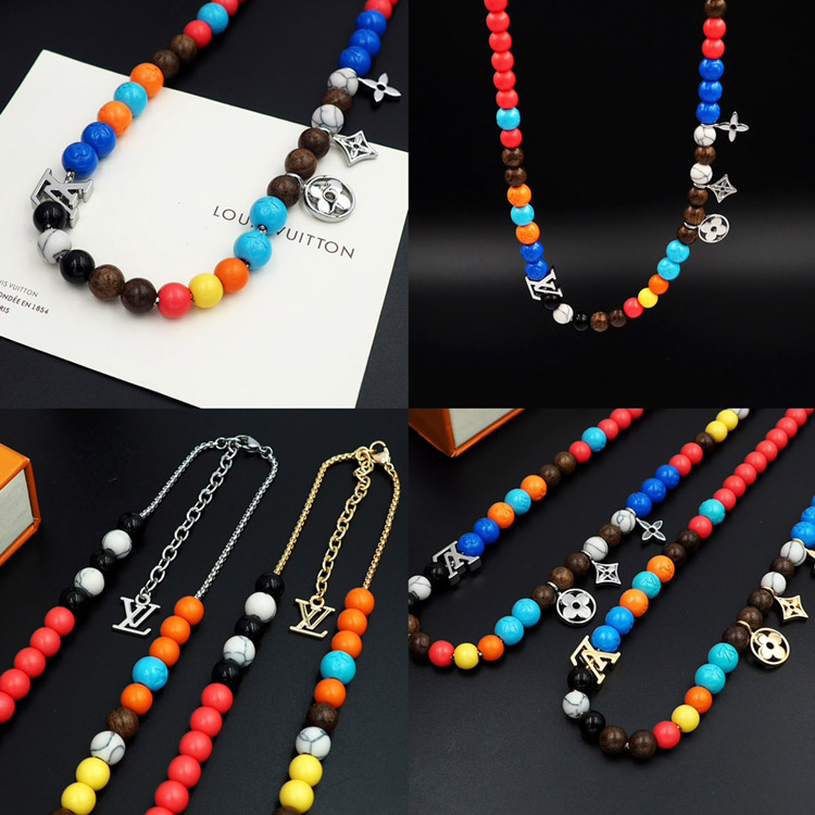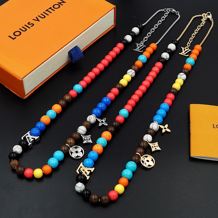 Home > Louis Vuitton LV adjustable cord embellished wooden inscription metal beaded necklace-3950