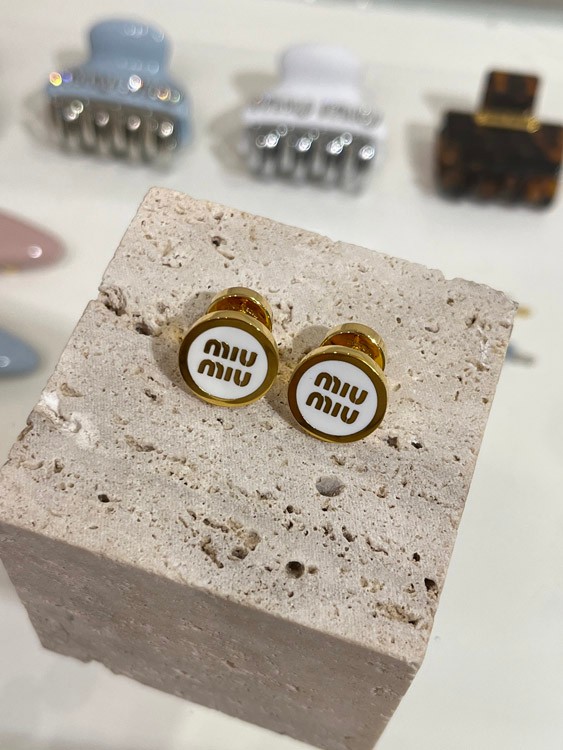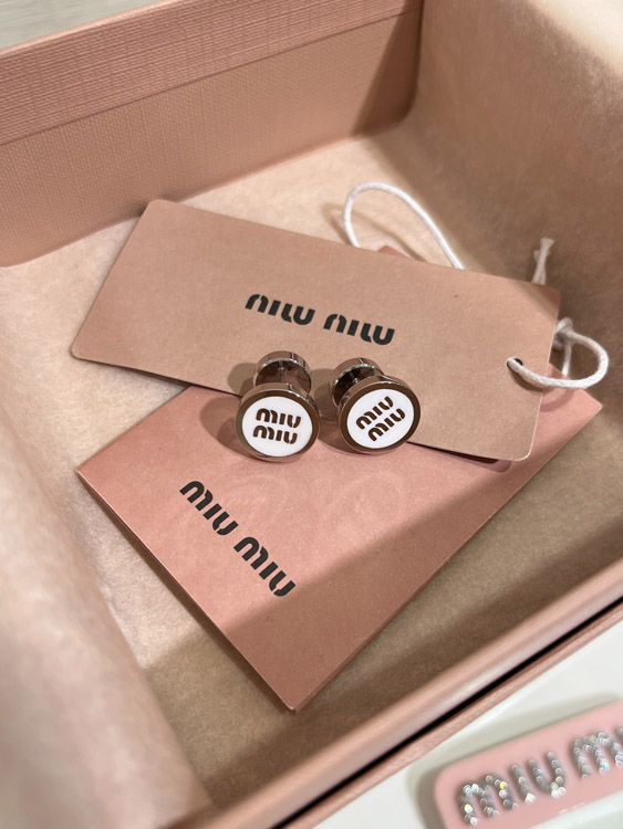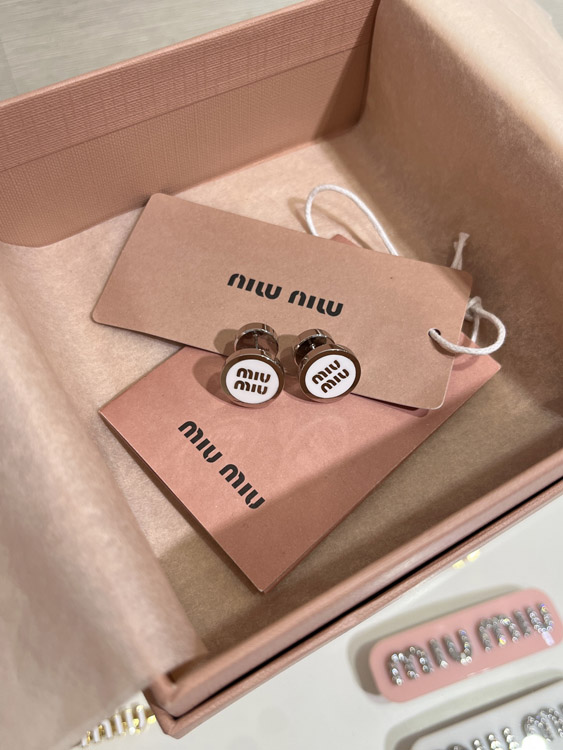 Home > MIUMIU white enamel letter metal round button earrings-3892
