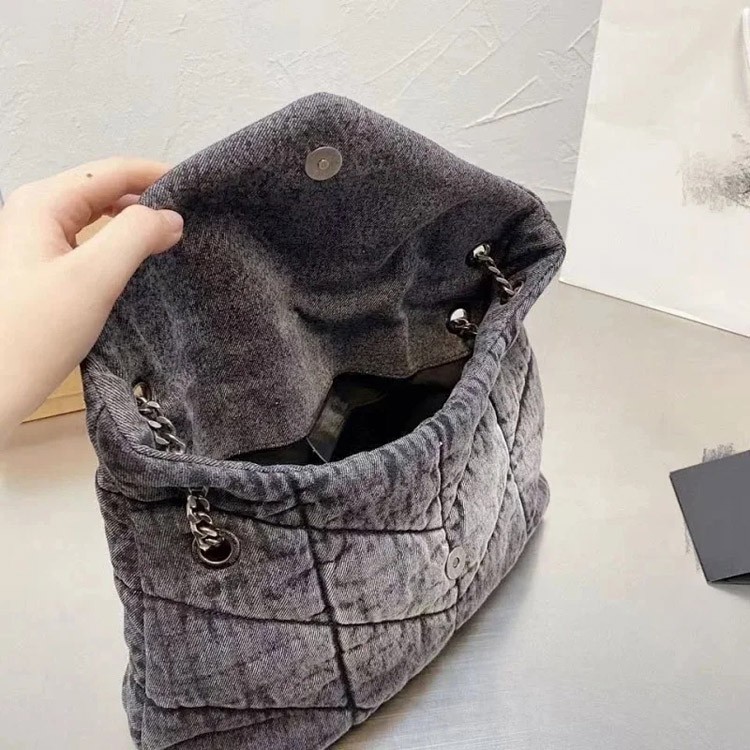 Home > Saint Laurent YSL Denim Shoulder Bag with Metal Hardware and Chain Strap-4632