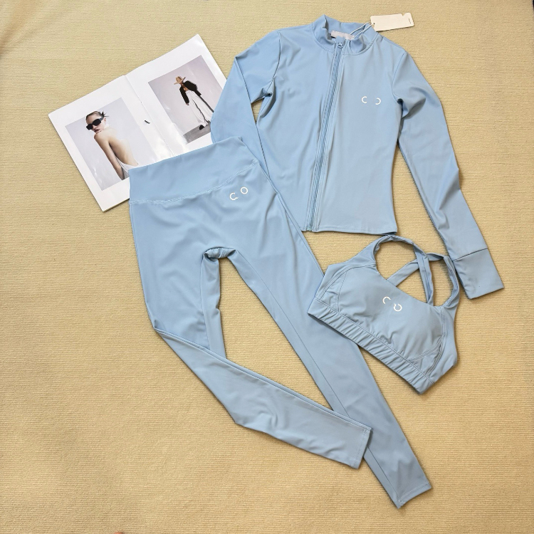 ALO new contrasting color embroidered zippered yoga and workout set-5367