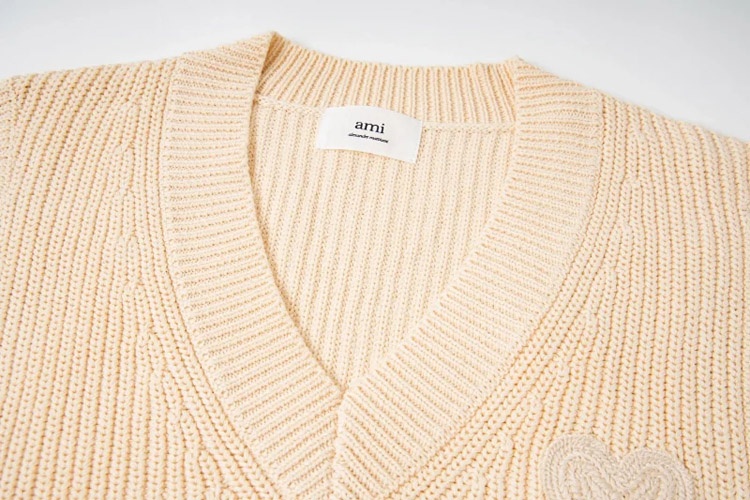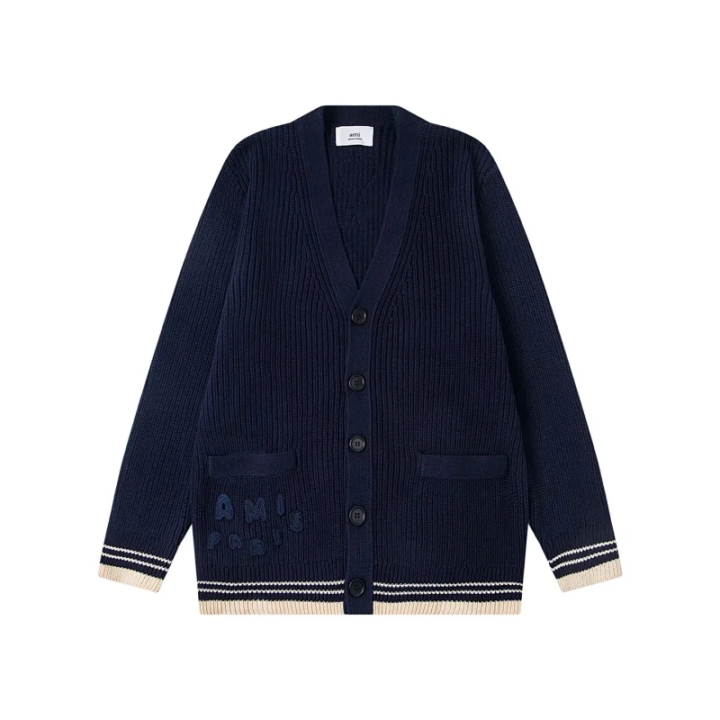AMIPARIS Knitted Striped V-Neck Drop-Shoulder Wool Sweater-5156