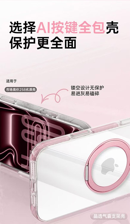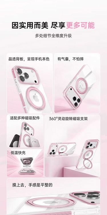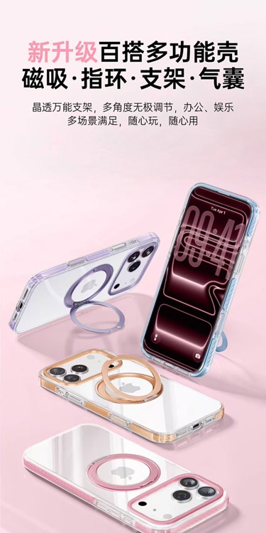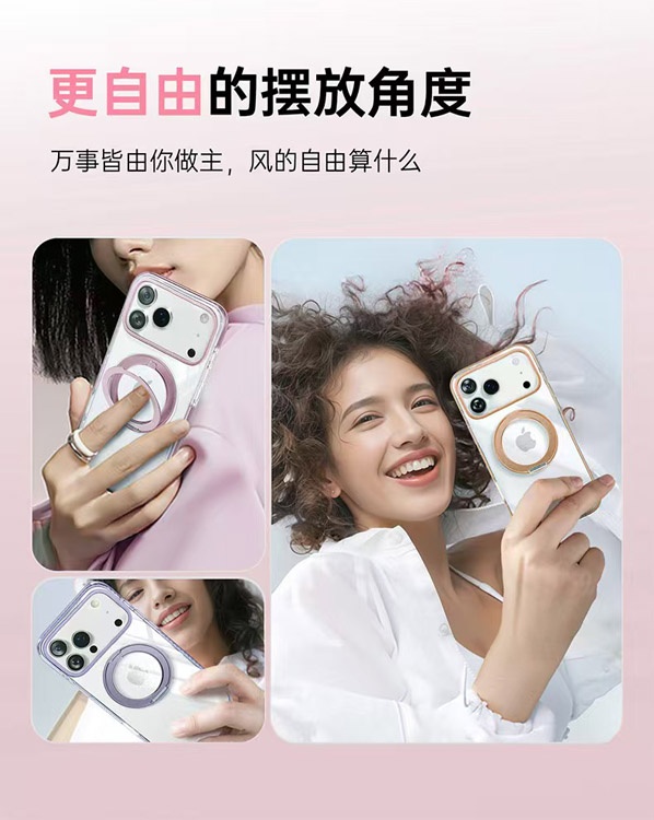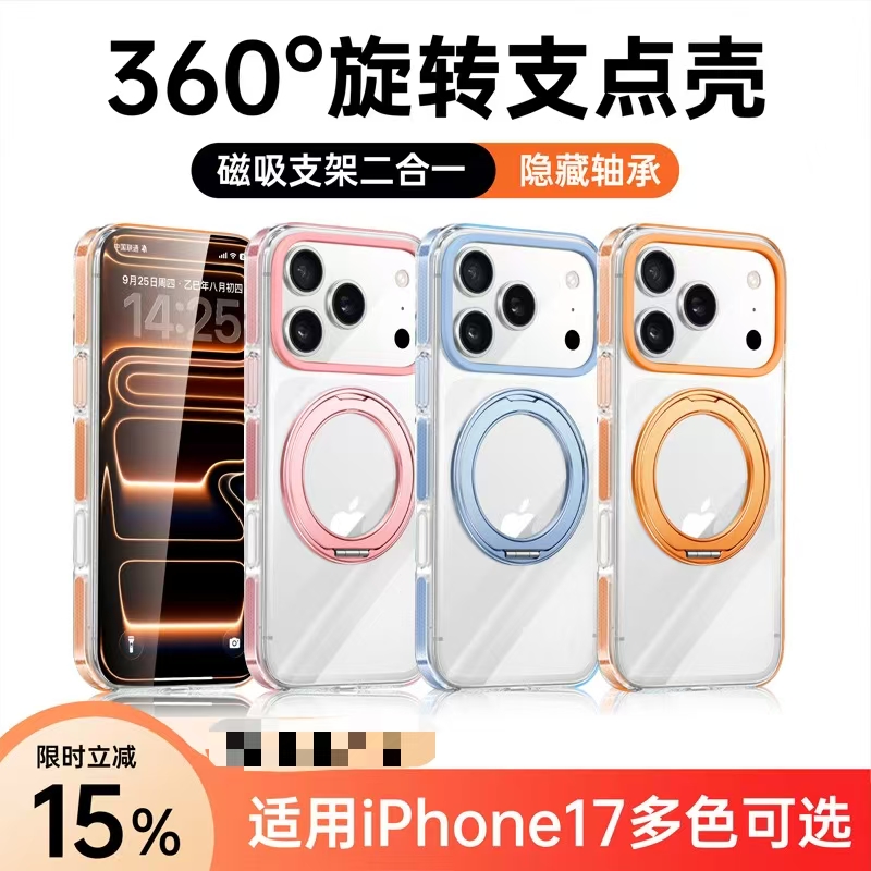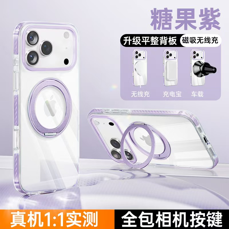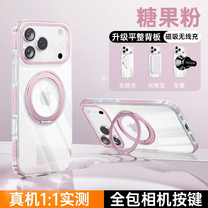 Apple 17 Magnetic Transparent Rotating Stand Drop-Proof Phone Case-4625