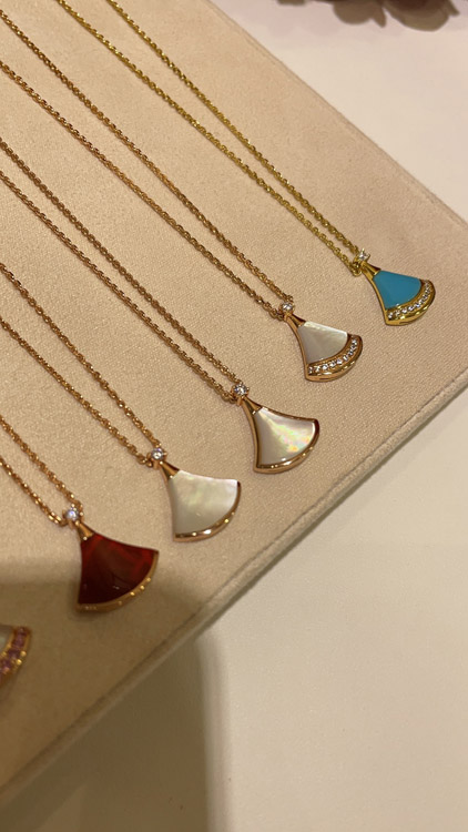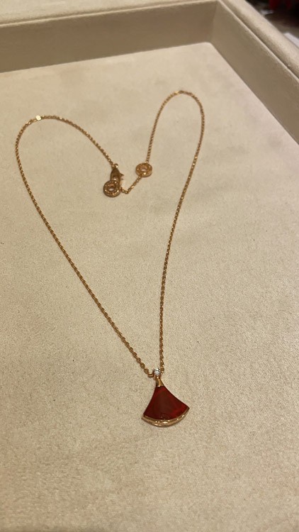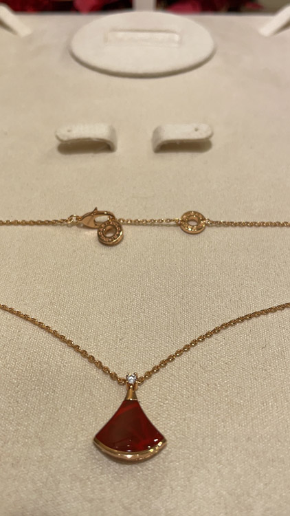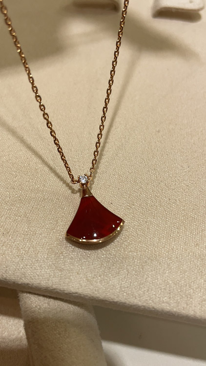 Bulgari small fan diamond red agate rose gold necklace-3894