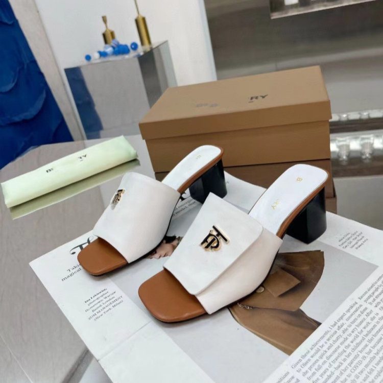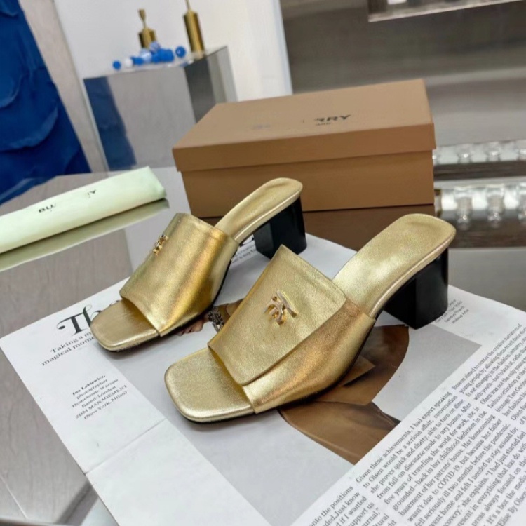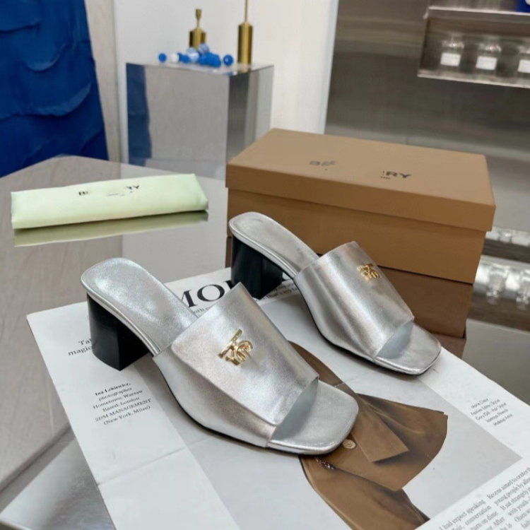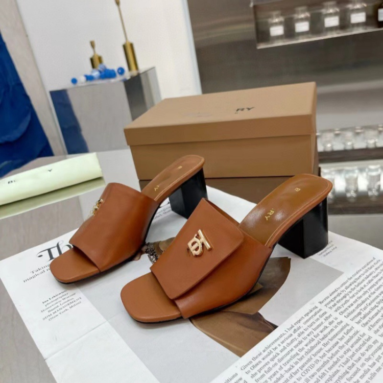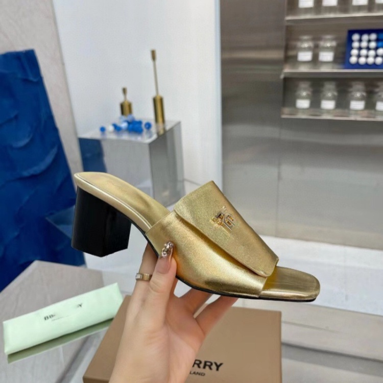 Home > Burberry new metal letter logo high-heeled slide sandals-5757