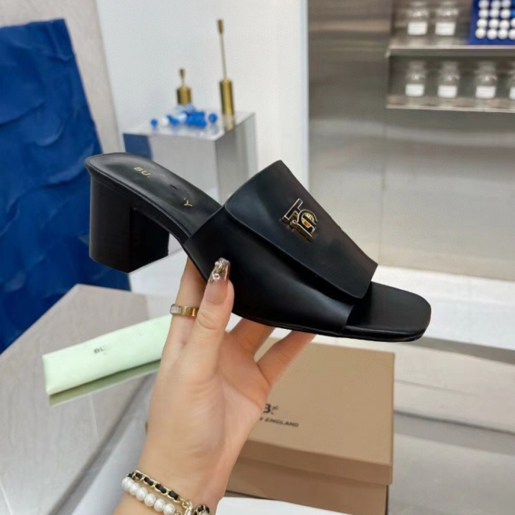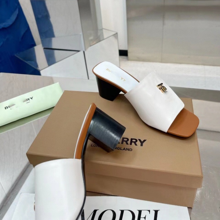 Burberry new metal letter logo high-heeled slide sandals-5757