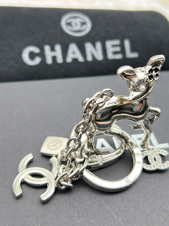 Chanel double c rhinestone pearl deer keychain-3835