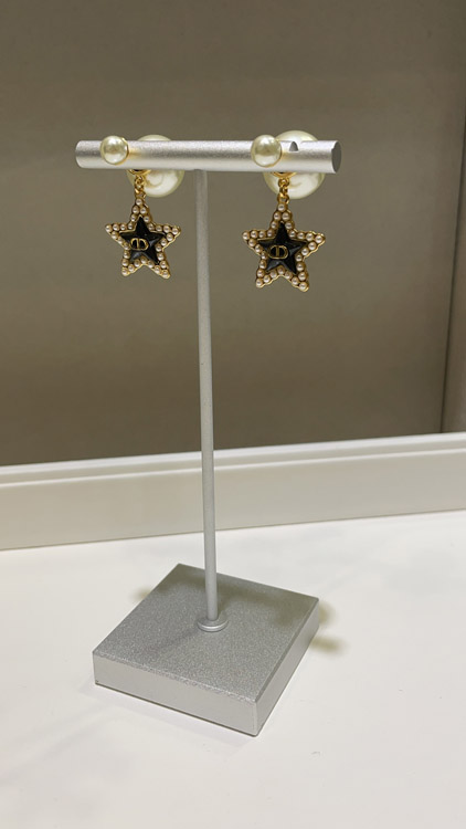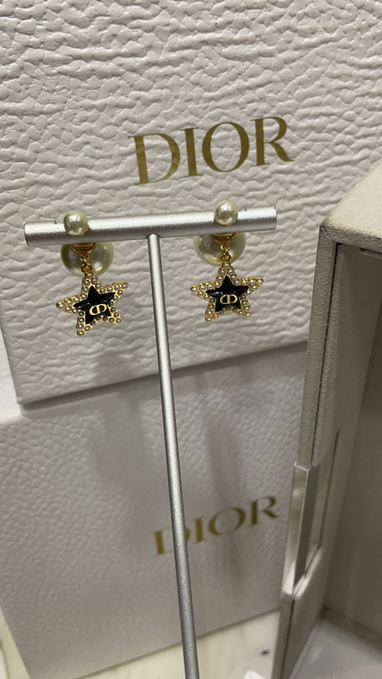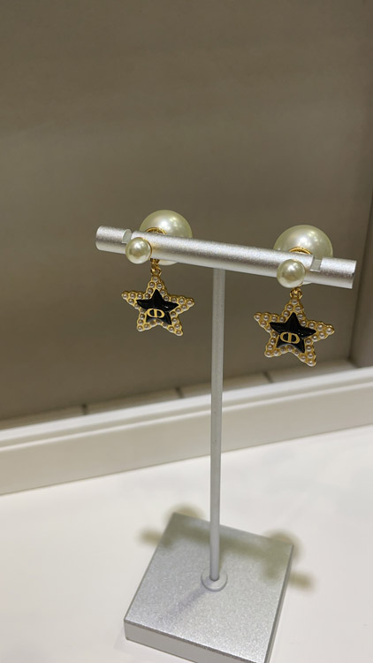 Dior navy blue star pearl double ball earrings-3891