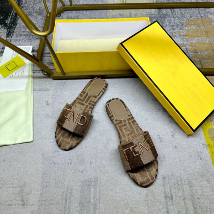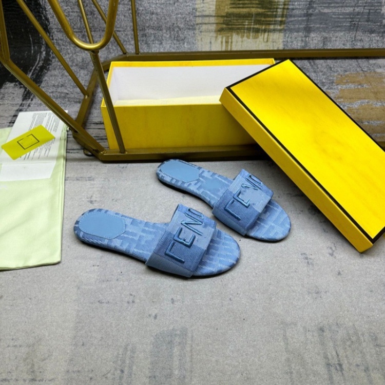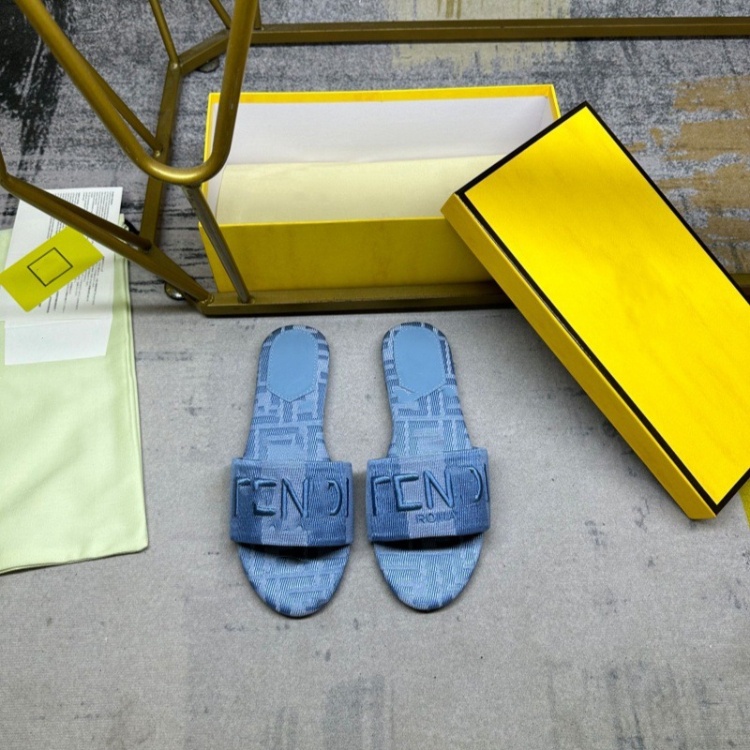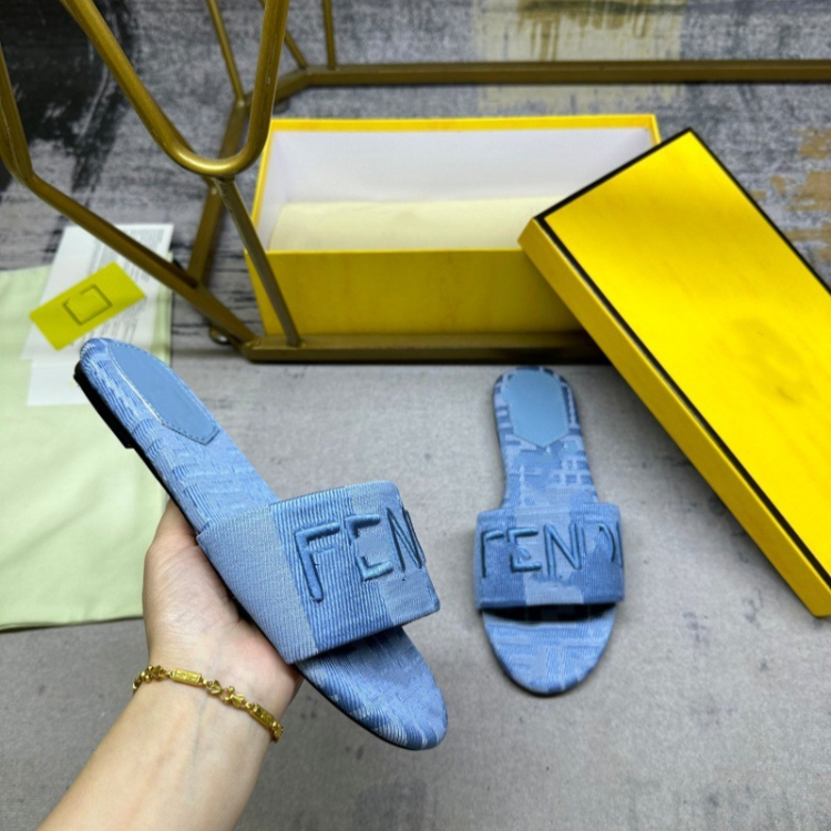 Fendi embroidered denim flat slide sandals-5760