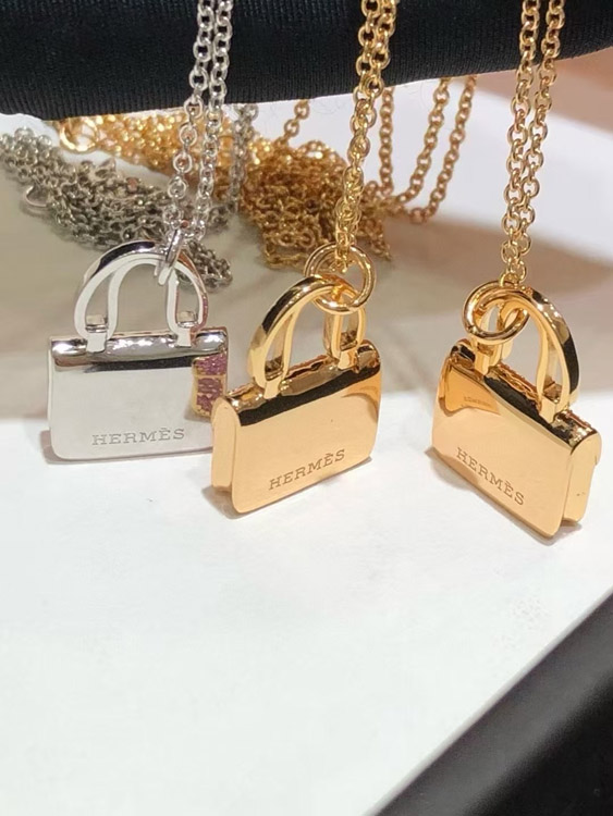 Home > Hermes padlock diamond rose gold pendant chain necklace-3837