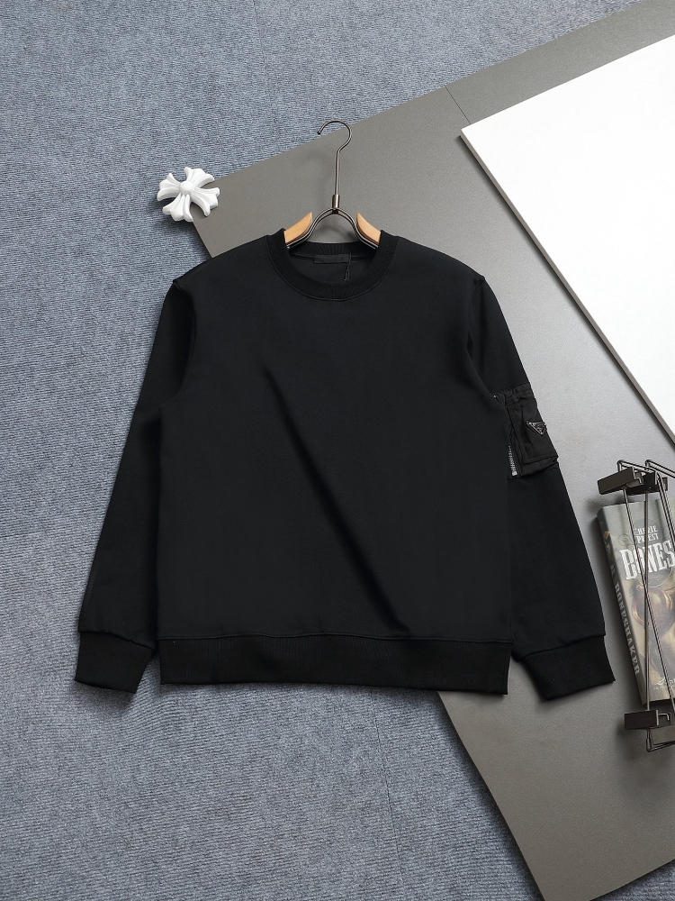 Home > Prada new loose-fitting sweatshirt with zippered sleeve pockets and metal triangle logo-5323
