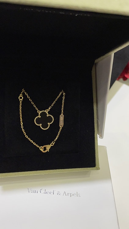 Van Cleef & Arpels Black Onyx Four-Leaf Clover Gold Necklace-3887