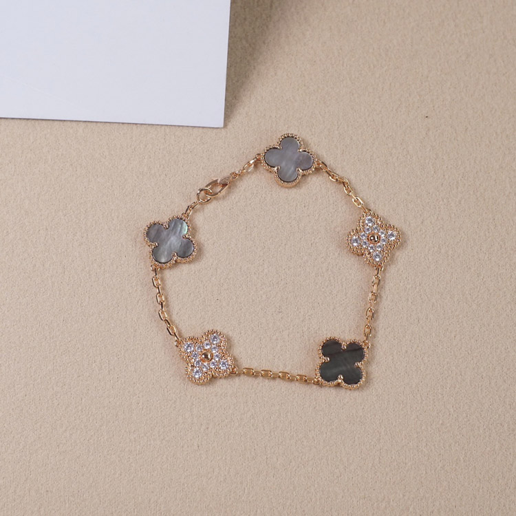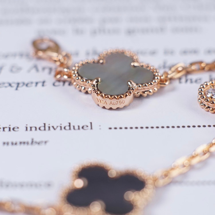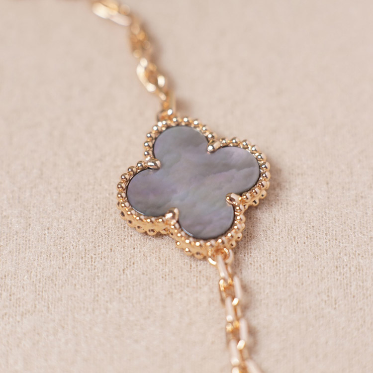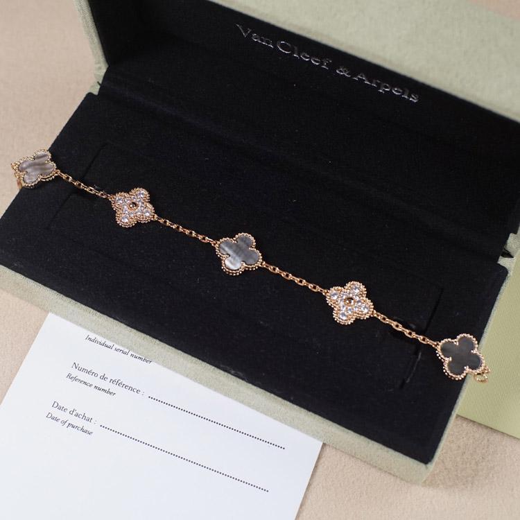 Van Cleef & Arpels Grey Mother-of-Pearl Diamond Five-Flower Bracelet-3691