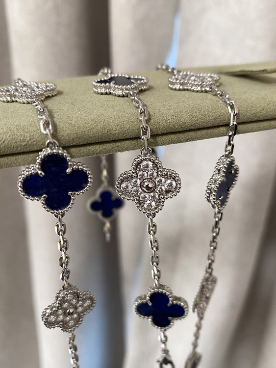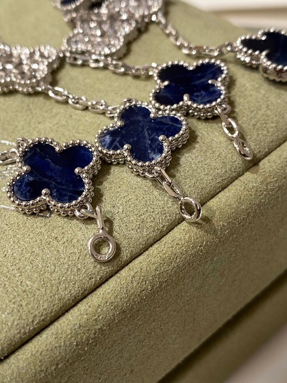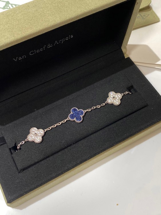 Van Cleef & Arpels white gold natural blue five-pattern stone diamond bracelet-3686