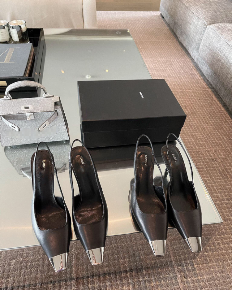 Yves Saint Laurent (YSL) high heels with metal toe caps-5738