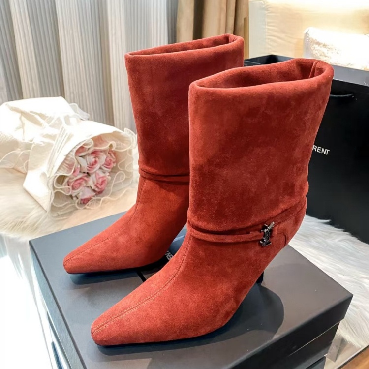 Yves Saint Laurent YSL new style stiletto heel fold-over mid-calf boots-5727